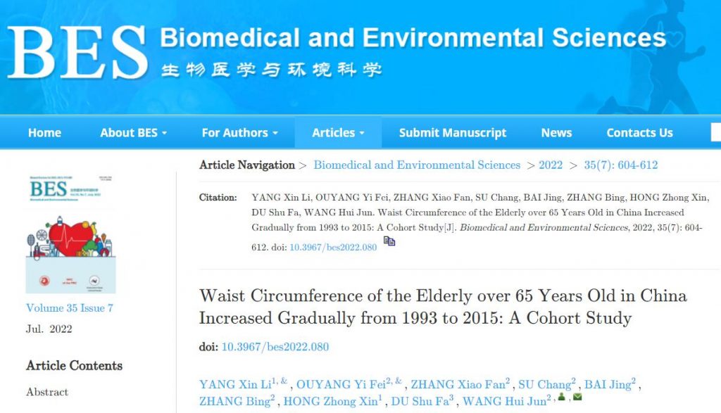 近期,首都醫科大學(xué)附屬北京友誼醫院、中國疾病預防控制中心營(yíng)養與健康研究所、美國北卡羅來(lái)納大學(xué)教堂山分校營(yíng)養系和卡羅萊納人口中心聯(lián)合完成的《中國健康和營(yíng)養調查》顯示,從1993年到2015年,我國65歲以上老人的平均腰圍從78厘米增加到86厘米,增長(cháng)了8厘米。該研究發(fā)表在《生物醫學(xué)環(huán)境科學(xué)》雜志上。