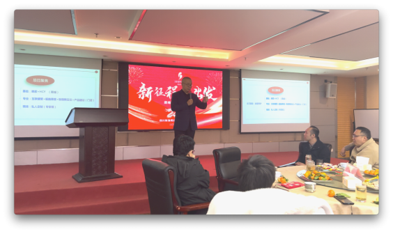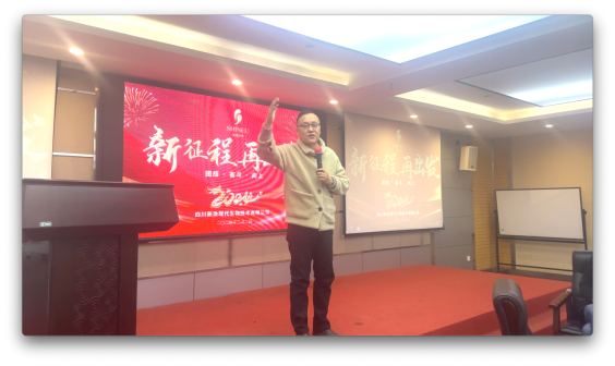 市場(chǎng)部朱進(jìn)強先生致辭,代表市場(chǎng)部將士們吹響2024新的號角。