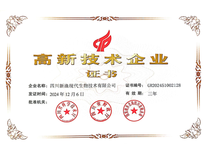 新漁生物順利通過(guò)政府高新技術(shù)企業(yè)認證授牌